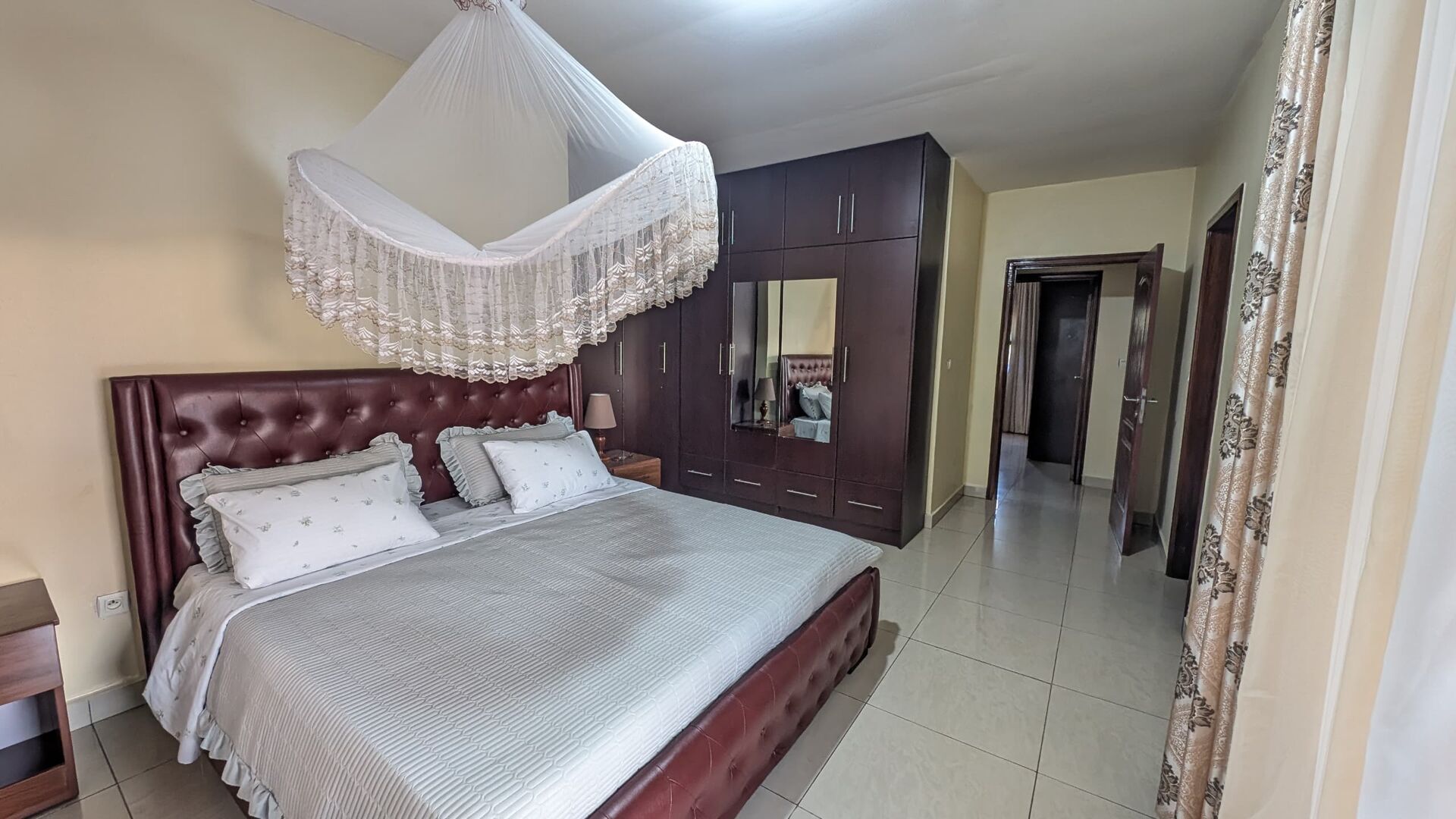 The house is located in estate community safe and quiet. Only Long term stay tenant at least from one year and above. Price: 2,000 USD for those who pays from six months and above there's a discount. In the calm room, soft light shines on a cozy bed with a warm blanket, fluffy pillow, tiny plants, and soft colors, while a sweet smell drifts from a cute mug in the quiet space.