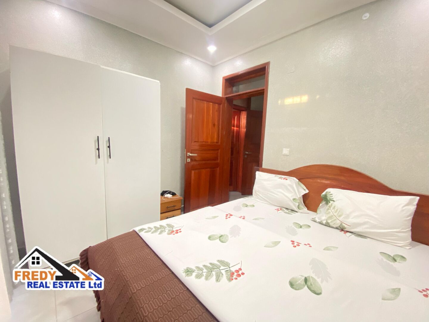 One of good Apartment rent house in Kanombe, In the calm room, soft light shines on a cozy bed with a warm blanket, fluffy pillow, tiny plants, and soft colors, while a sweet smell drifts from a cute mug in the quiet space.